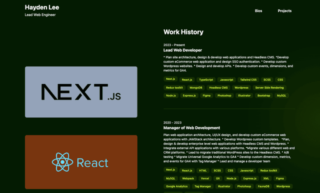 Plan web application architecture, UI/UX design, and develop custom eCommerce web applications with JAMStack architecture. * Develop Wordpress custom templates. *Plan, design & develop enterprise level web applications with Headless CMS and Wordpress. * Integrate external API applications with various platforms. *Migrate various different web and CRM platforms. * Lead to migrate traditional WordPress sites to the Headless CMS. * A/B testing * Migrate Universal Google Analytics to GA4 * Develop custom dimension, metrics, and events for GA4 with Tag Manager * Lead and manage a developer team